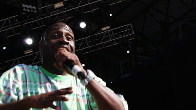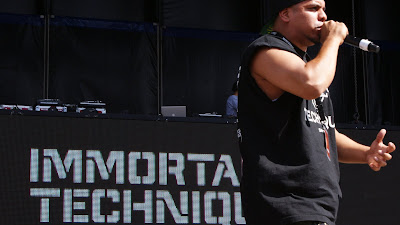 The doors opened at noon. Dead Prez had the crowd jumping to their anti-establishment message while Immortal Technique followed and continued the anti-government vibe. De la Soul got on next and took things to the next level, being joined on stage by old school cats like Dres from Black Sheep who performed “The Choice is Yours,†Q-tip to do “Buddy,†and Biz Markie who brought the house down with, “You Got What I Need.â€