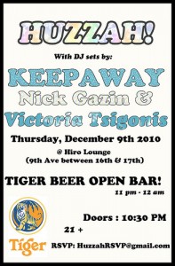 Check out Huzzah! for a night of indie, hip hop, rock, new wave, no wave (whatever wave) spun by resident DJ Victoria Tsigonis and special guest DJ’s KEEPAWAY (www.myspace.com/keepaway) & Nick Gazin. Photos will be taken by your co-host Laura June Kirsch, founder of the world renowned ZackMorrisCellPhone.com. For food with southern flair in Union Square, Chat ‘N’ Chew makes some kickass fried chicken, pork-chops, and meatloaf. In the running for oldest bar in NYC, Pete’s Tavern has been around since 1864 and was made famous by author O. Henry who wrote “Gift of the Magi,” in one of its booths. One good thing about the Union Square location of Whole Foods is that it’s not only a reprieve from this tourist heavy area, but with it’s huge windows, you can sit, get healthy organic food and drink, and watch the insanity like it’s a movie.