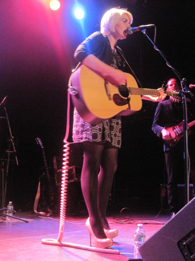 Jessica Lea Mayfield kicked off her set with “Our Hearts Are Wrong,†a fantastic tune from her most recent album, Tell Me. With 5 inch gold platform stilettos and a short platinum ‘do, this tiny 21-year-old girl’s big voice with a southern drawl laid out some of the saddest, darkest, but most beautiful lyrics I’ve heard. With opening lyrics like, “I’m almost too lonely to speak,†her song “Sleepless†has absolutely beautiful phrasing and melodies. Her voice is such a unique instrument though– a soft southern twang mixed with a low bit of grunge and a touch of little-girl/Joanna Newsom cuteness. This young, extremely talented singer is certainly someone to watch out for!
