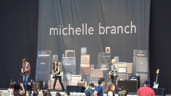 I was not only surprised by how many Goo Goo Dolls songs I knew, but also how many of earlier performer Michelle Branch’s songs I recognized. She was accompanied by two other musicians, one of whom she introduced as her “husband and baby daddy.†In addition to her hits “Everywhere†and “Are You Happy Now,†she played a new single “Loud Music†from her upcoming album. With her strong voice Branch kept the audience entertained, singing and strumming as the sun sank in the sky.