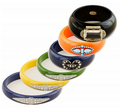 Given the surplus of ridiculously cheap jewelry I’ve collected from Forever 21 and Old Navy (hey, it doesn’t look as cheap as it is – at least not until the 10th wear, and by then it’s practically bought itself!), I have a hard time justifying splurging on bangles and baubles. I mean, why spend so much money on a single piece of fine jewelry for myself when I can get a whole handful of faux trinkets for a fraction of the price? Of course, there are always exceptions… namely when a genius collaboration of designers births an accessories line so chic, I can’t bear to pass it up, even if it goes against all my more practical budgeting plans. And the long-anticipated Lulu Frost for J. Crew collection is definitely one of those lines that’s worth pushing frugality to the wayside. Incorporating all sorts of on-trend styles like chunky bangles, multi-colored enamel jazzed up with sparkling crystal accents, and bold geometric shapes, these updated Art Deco inspired pieces are the perfect contrast to the upcoming season’s oversized sweaters, muted hues, and chunky knits! Plus, ranging in price from around $45 to $135, you can still indulge without feeling too impractical… plus, these pieces won’t fall apart by the 12th time you wear them!