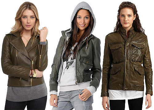 Aside from your favorite cozy peacoat, warm puffer jacket, and trim-and-tailored blazers, everyone needs a leather jacket (or faux leather one!) to carry them through the fall season! And nowadays, as the leather look has expanded from everything to sporty bombers and moto styles to even military jackets and blazers, leather jackets are no longer best reserved for just achieving the biker look. And what better way to update your classic black leather jacket than with a fresh, fall-friendly shade like olive green? While a green leather jacket sounds like a bit of a fashion risk, a toned-down neutral like olive still goes with nearly everything and really pops with fall’s favorite jewel tones, and adds a dose of seasonal color to otherwise monochromatic autumn ensembles. Whether you’re looking for something moto-inspired, military chic, or a casual bomber style for cozy fall layering, olive green is a cool way to stay warm in leather this season!