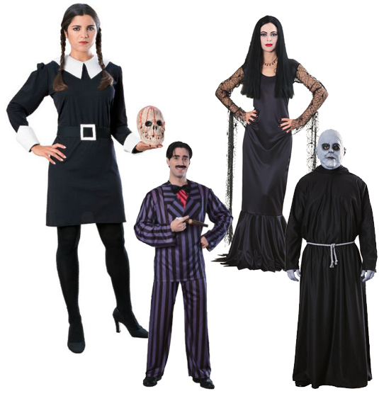 Do you have a chic and spooky costume planned for Halloween? Something simple and chic, your classic black little ghoul? Both retro and chic, and a plus if your favorite day of the week happens to be Wednesday. We loe these Addams Family costumes for singles, couples and groups! If you’re a fan of the grim family in the hit TV series this may be the costume for you. If you decide to DIY this year, simply put on your best little black dress add a white collar and cuffs made of white felt. Braid your hair and track down that bloody skull in your closet, or nearest Halloween supply store, and instantly you’re transorformed into Wednesday Adams!