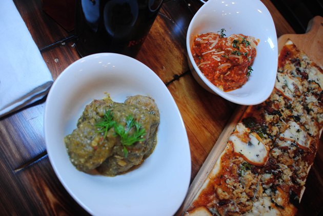 The menu had a large selection to choose from, but in the dimly lit room the crammed menu was difficult to read. There were plenty of creatively named options including the gallery of meatballs and a plethora of sauces to choose from. I recommend going with The Sauce Sampler which allows you to choose a type of meatball – from pork to Meatzza (which had angus beef short ribs, hanger steak, buffalo, potato, and parmesan) – with a choice of three sauces. Sauces range from the spicy (Hells Bells Vodka Sauce) to the sweet Dragon’s Lair (a green curry peanut sauce with red bell pepper and thai basil) and everything in between.