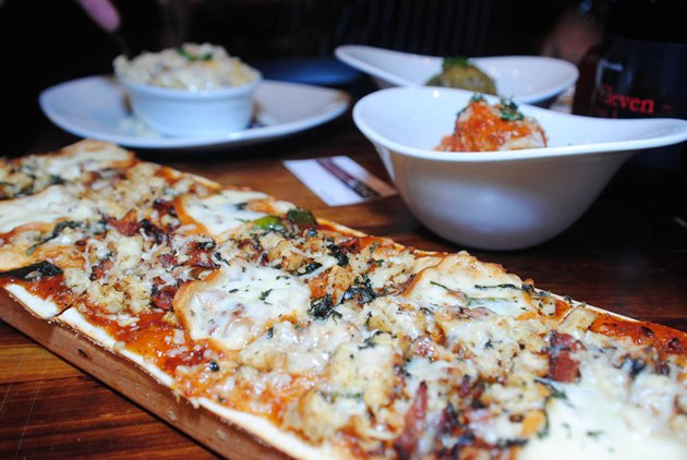 If you want more than just meatballs, the menu offers cracker bread pizzas; seasonal salads; Sammies (meatballs and sauce on a challah roll); cheese fries; and the famous Black Truffle Mac ‘n’ Cheese, which I can vouch is rich and tasty with both fontina and parmesan cheese, but also very greasy, so pace yourself. The Fall Chop, which includes arugula with red seedless grapes, pears, green apple, and radicchio with caramelized pineapple and vinaigrette and smokey rubbed Golden Graham crisps, was impressively inventive. From the sides, I highly recommend the Roasted Brussels Sprouts with Maple Syrup and Red Chili Sauce, a sweet-meets-savory version of a normally mundane side that was possibly my favorite part of the meal.