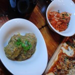 Turbo BBQ Chicken Crispy Crackerbread (background is traditional meatball with fire roasted marinara sauce)