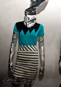 The whole spring line and fashion event was inspired by the book Crash by JG Ballard. The book is a controversial story about a character who becomes sexually aroused from participating in real-life car crashes. The book introduces a new sexuality born from technology. The mannequins weren’t ordinary fashion forms but their heads were removed and replaced with a silver sort of sculpture that extended from the top of their necks to the ceiling. The walls were covered with old newspapers. The inspiration of the collection also had an industrial 70’s vibe.