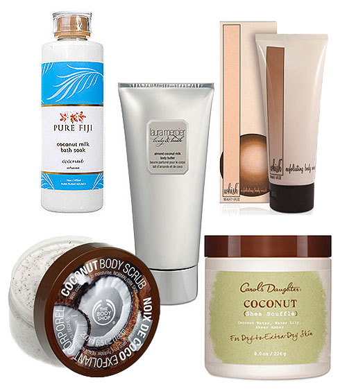 Pictured above: Pure Fiji Coconut Milk Bath Soak, Laura Mercier Almond Coconut Body Butter, Whish Coconut Milk Exfoliating Body Wash, The Body Shop Coconut Body Scrub, and Carol’s Daughter Coconut Shea Souffle.