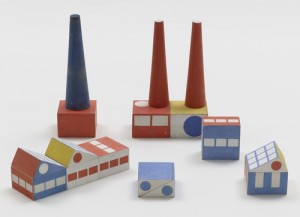 Ladislav Sutnar. Prototype for Build the Town Building Blocks. 1940–43. Painted wood, large block: 1 3/4 x 2 3/4 x 2 3/4″ (4.4 x 7 x 7 cm). The Museum of Modern Art, New York. Gift of Ctislav Sutnar and Radoslav Sutnar