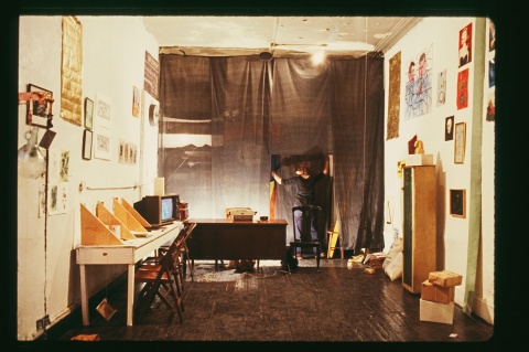Coleen Fitzgibbon installing the exhibition “Income and Wealth†at 5 Bleecker Street, 1979. Courtesy Coleen Fitzgibbon