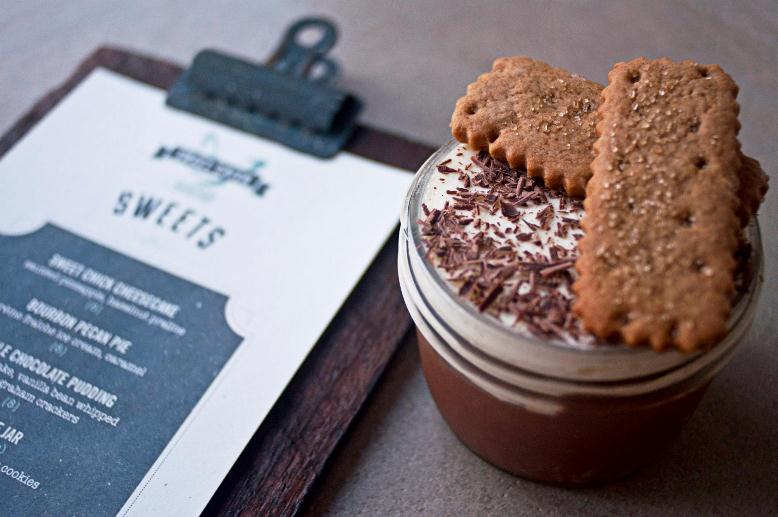 For dessert, the Southern classics are equally mouth watering, with the favorite being Bourbon Pecan Pie ($8), baked in house and topped with creme fraiche ice cream and caramel. The Sweet Chick Cheesecake ($8) and Double Chocolate Pudding ($8) are satisfying to sweet teeth as well, and the Cookie Jar ($10) is a great whimsical treat to share as a group if the other daily specials don’t catch your eye (they will).
