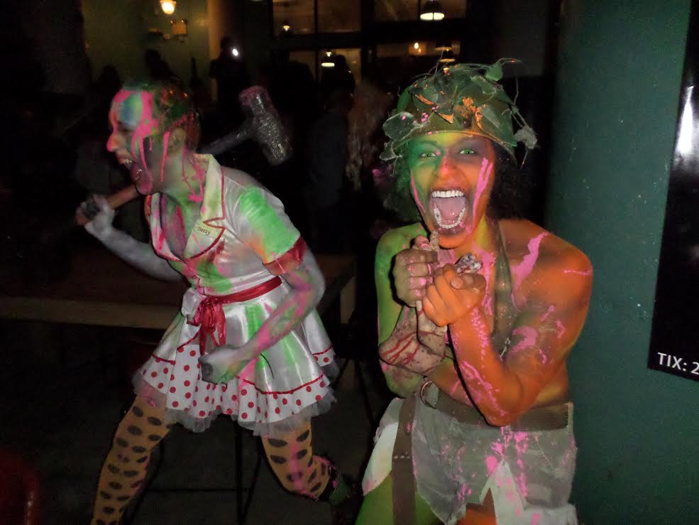 I was lucky enough to attend the press/opening party for Blood Manor, which first took place at a bar across the street from the attraction (Blood Manor is down at 163 Varick) hosted by James-one of the congenial owners of Blood Manor as well as “SX Drinks.†This boisterous hour and a half of taking pictures with bloodied clowns, sexy dom lady ghouls and various other horrifically painted/costumed Blood Manor actors ended with groups of ten or so of us then stepping across the street to enter the scary “manor.â€