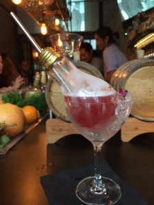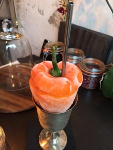 What really impresses at the bar is the creative cocktails created by mixologists Shige Kabashima from Angel’s Share and Joji Watanabe from the Experimental Cocktail Club. The full-flavored drinks are delicious and well-presented, several making for insta worthy pictures including the Flower (see above), a cocktail made of dry gin, lavender, elderflower and cranberry served in a light bulb, and the Cucumber (see right), a spicy tequila, cucumber and lime concoction poured into a frozen bell pepper. Most drinks are $11 or $12.